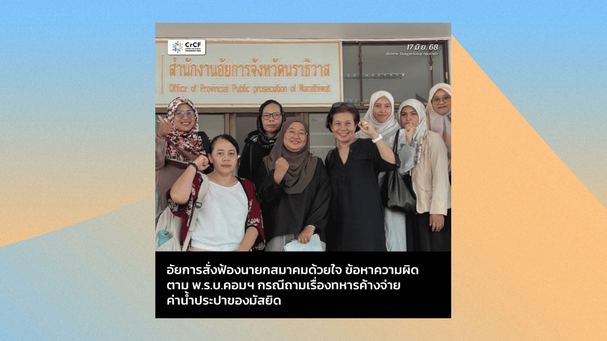 อัยการสั่งฟ้องนายกสมาคมด้วยใจ ข้อหาความผิดตาม พ.ร.บ.คอมฯ กรณีถามเรื่องทหารค้างจ่ายค่าน้ำประปาของมัสยิด 17 มิถุนายน, 2025