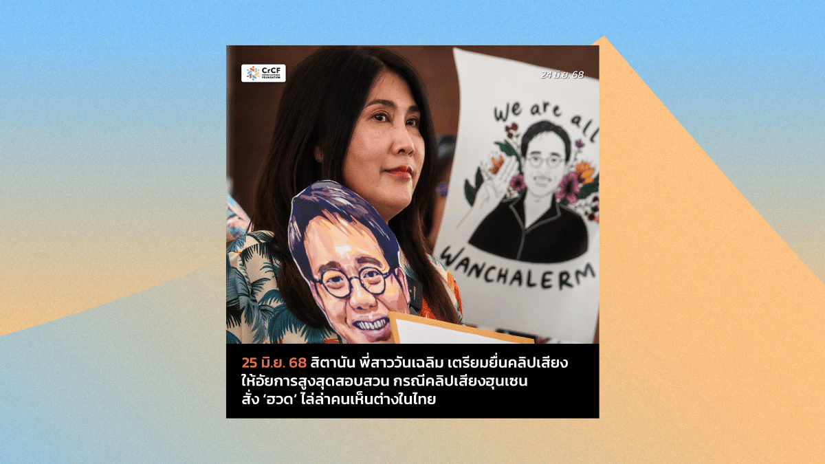 25 มิ.ย. 68 สิตานัน พี่สาววันเฉลิม เตรียมยื่นคลิปเสียงให้อัยการสูงสุดสอบสวน กรณีคลิปเสียง “เคลียง ฮวด” 24 มิถุนายน, 2025