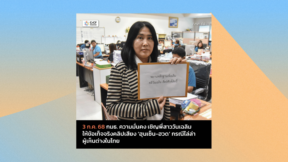 17 ต.ค. 68 มูลนิธิผสานวัฒนธรรมร้อง กสม. ขอให้ตรวจสอบการทำหน้าที่ของสื่อ จนนำมาสู้การข่มขู่คุกคามนักปกป้องสิทธิมนุษยชน 17 ตุลาคม, 2025