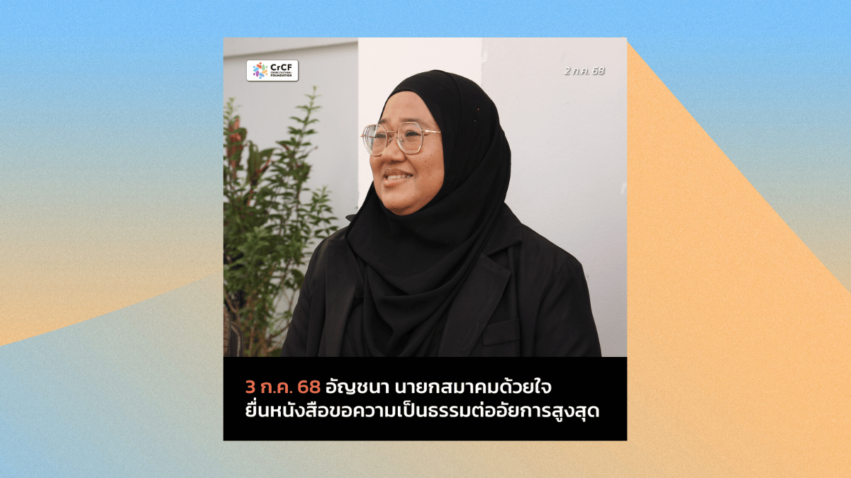 27 ส.ค. 68 มูลนิธิผสานวัฒนธรรม ยื่นคำร้องขออนุญาตฎีกาและฎีกา กรณีขอให้ไต่สวนการใส่โซ่ตรวนจำเลย 13 คน 23 กันยายน, 2025