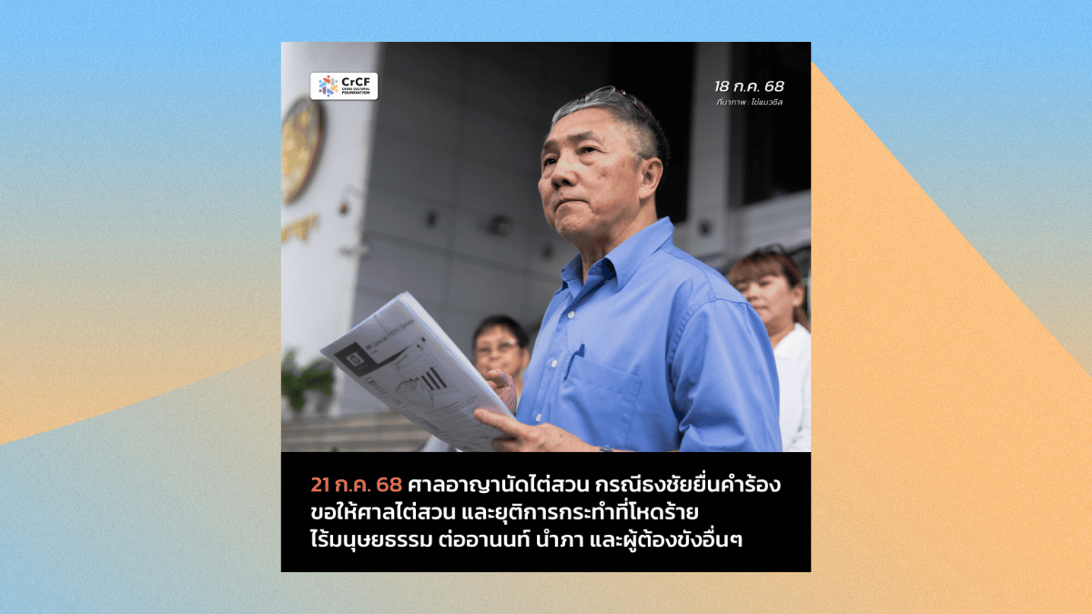 21 ก.ค. ศาลอาญานัดไต่สวน กรณีธงชัยยื่นคำร้องขอให้ศาลไต่สวน และยุติการกระทำที่โหดร้าย ต่อผู้ต้องขัง 18 กรกฎาคม, 2025
