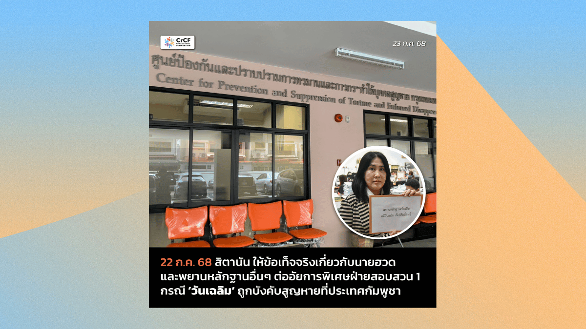 18 ส.ค. ประกายดาวเข้าให้ข้อเท็จจริงพร้อมพยานหลักฐานอื่นๆ กรณีวันเฉลิมถูกบังคับสูญหายที่กัมพูชา 20 สิงหาคม, 2025