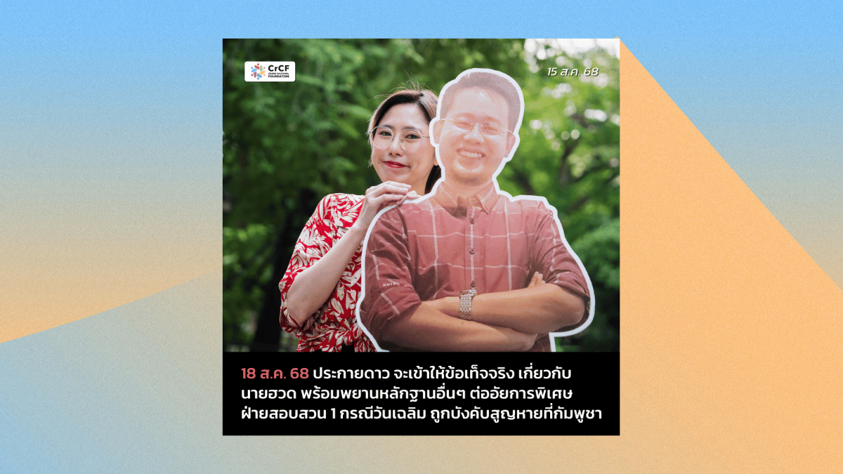 18 ส.ค. 68 ประกายดาว จะเข้าให้ข้อเท็จจริงเกี่ยวกับนายฮวด กรณีวันเฉลิม ถูกบังคับสูญหายที่กัมพูชา 15 สิงหาคม, 2025
