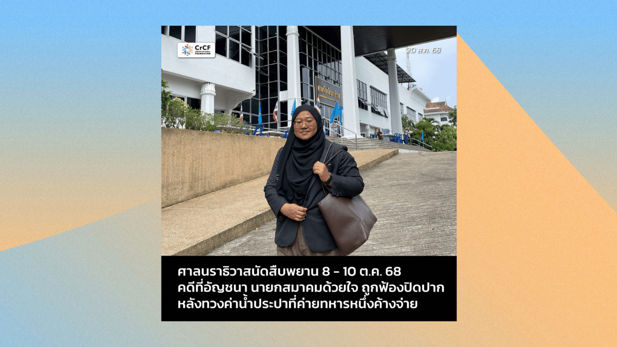 8-10 ต.ค. 68 ศาลนราธิวาสนัดสืบพยาน กรณีอัญชนา นายกสมาคมด้วยใจ ถูกกองทัพเรือฟ้องปิดปากตาม พ.ร.บ.คอมฯ 7 ตุลาคม, 2025