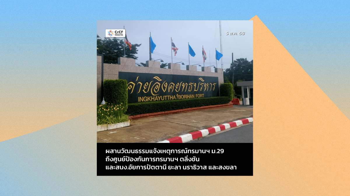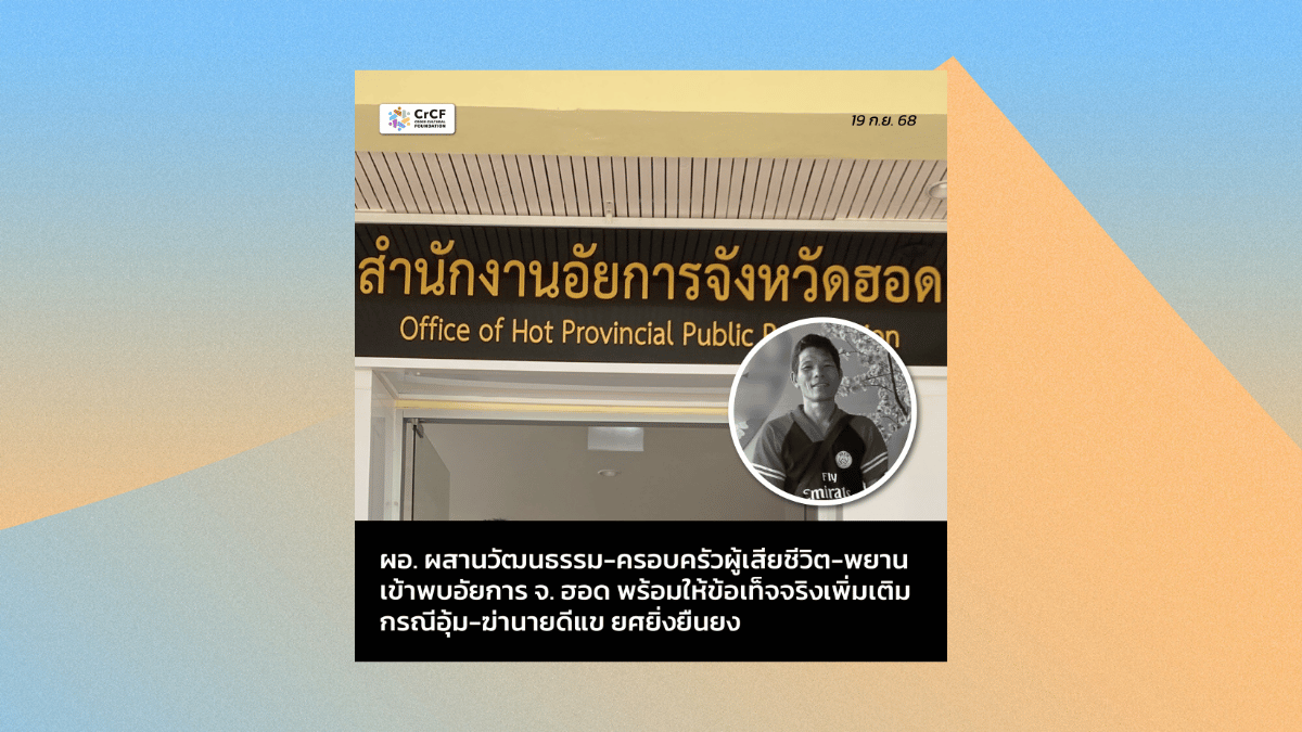ผสานวัฒนธรรมร้องศูนย์ป้องกันการทรมานฯ กรณีชาวบ้านกะเหรี่ยงถูกอุ้ม-ฆ่า อาจเข้าข่ายผิด พ.ร.บ. ทรมานฯ 13 สิงหาคม, 2025