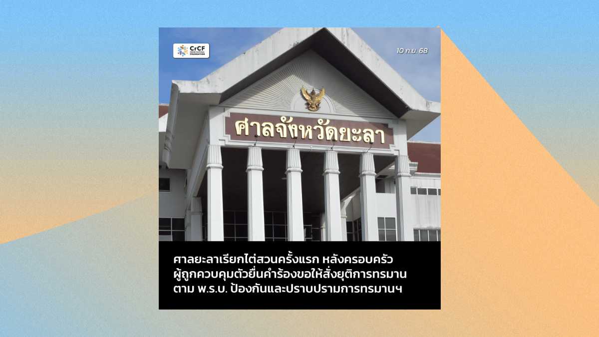 ศาลยะลาเรียกไต่สวนครั้งแรก หลังครอบครัวผู้ถูกควบคุมตัวยื่นคำร้องขอให้สั่งยุติการทรมาน 10 กันยายน, 2025