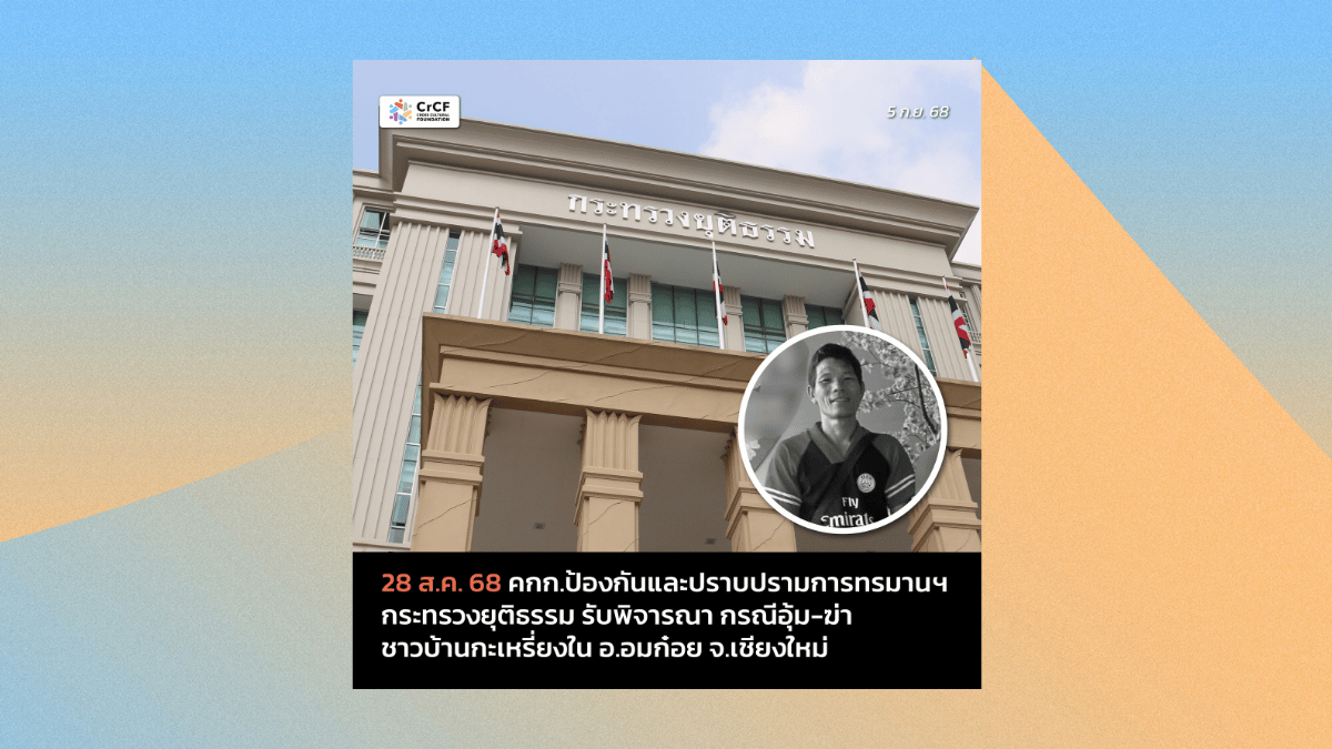 28 ส.ค. คกก. ป้องกันและปราบปรามการทรมานฯ กระทรวงยุติธรรม รับพิจารณา กรณีอุ้ม-ฆ่าชาวบ้านกะเหรี่ยงใน อ.อมก๋อย 5 กันยายน, 2025