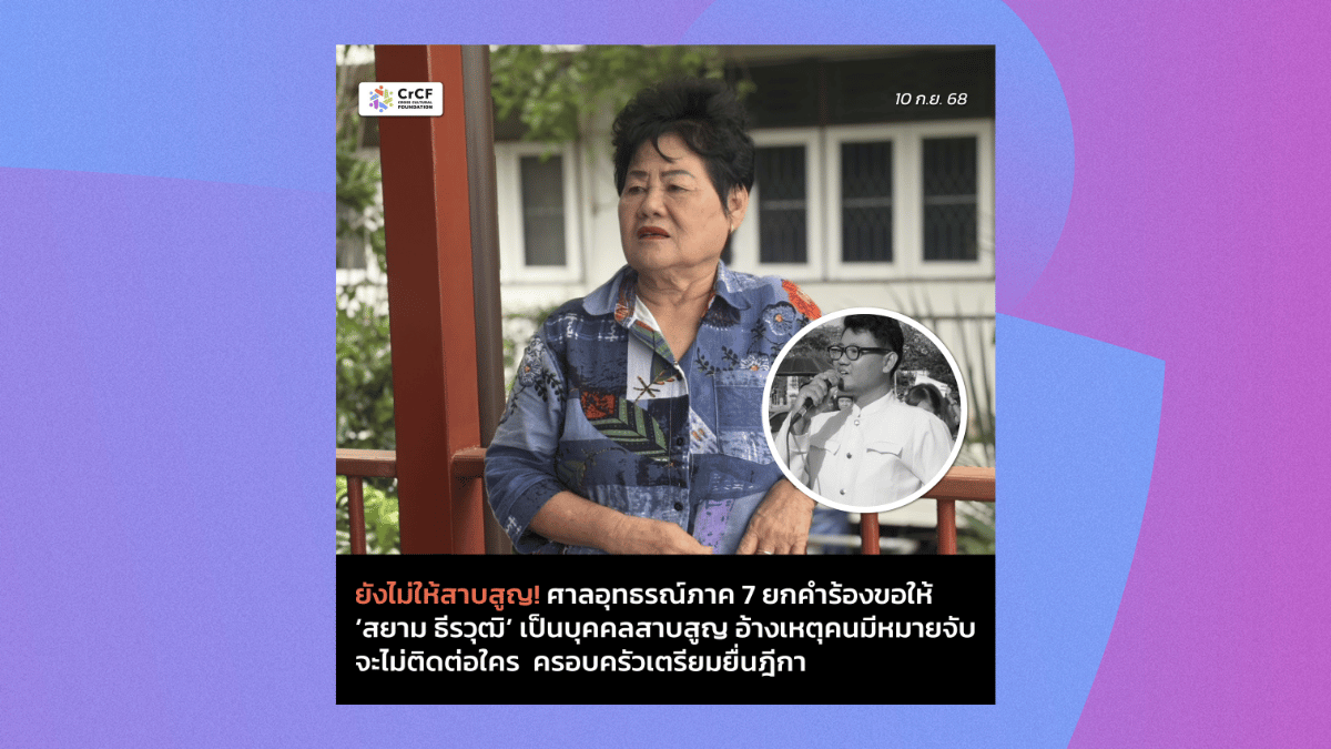 10 ก.ย. ศาลสมุทรสาครนัดฟังคำสั่งศาลอุทธรณ์ กรณีขอให้สยาม ธีรวุฒิ เป็นบุคคลสาบสูญ หลังถูกบังคับสูญหาย เมื่อปี 2562 9 กันยายน, 2025
