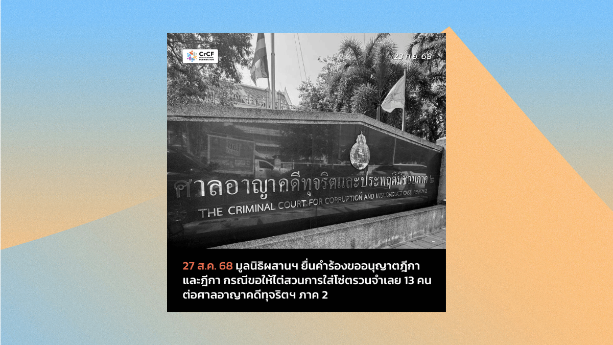 29 ก.ค. 68 ศาลอุทธรณ์แผนกคดีทุจริตฯ ยกคำร้อง กรณีมูลนิธิฯ ยื่นคำร้องไต่สวนการใช้โซ่ตรวนจำเลย 13 คน 31 กรกฎาคม, 2025