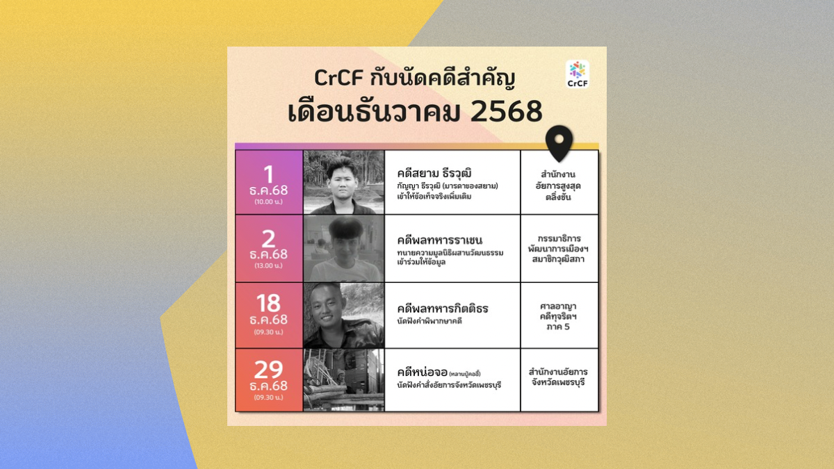 [PR] 26 พ.ย. นัดฟังคำพิพากษาศาลอุทธรณ์ คดีส่งผู้ร้ายข้ามแดน ‘อี ควิน เบดั๊บ’ ผู้ลี้ภัยชาวเวียดนาม 25 พฤศจิกายน, 2025