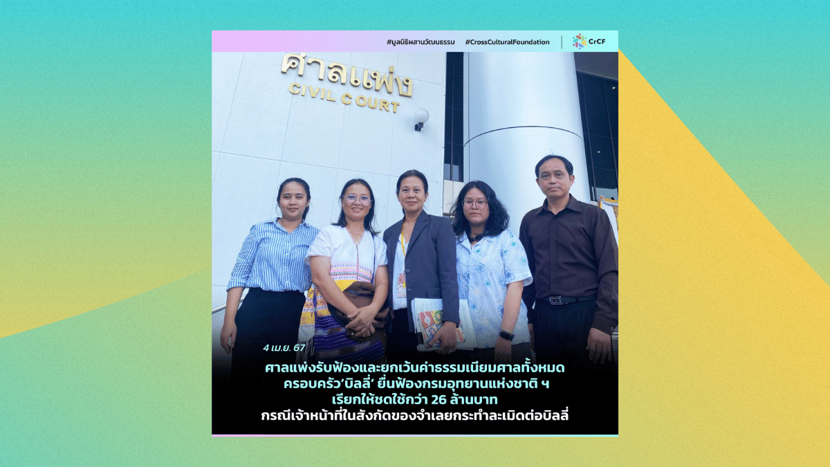 ศาลแพ่งรับฟ้องและยกเว้นค่าธรรมเนียมศาลทั้งหมด ครอบครัว’บิลลี่ พอละจี รักจงเจริญ’ ยื่นฟ้องกรมอุทยานแห่งชาติ ฯ เรียกให้ชดใช้กว่า 26 ล้านบาท กรณีเจ้าหน้าที่ในสังกัดของจำเลยกระทำละเมิดต่อบิลลี่ 5 เมษายน, 2024