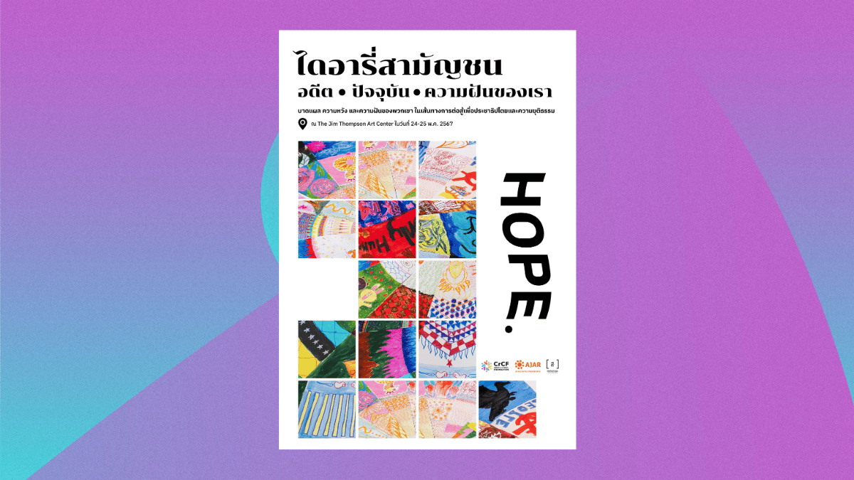 ไดอารีสามัญชน อดีต ปัจจุบัน ความฝันของเรานิทรรศการจะจัดแสดงในงาน “ความหวังหลังความเจ็บปวด : วังวนความรุนแรงทางการเมือง ผ่านเรื่องเล่าจากผู้ได้รับผลกระทบ” ที่ The Jim Thompson Art Center ในวันที่ 24-25 พ.ค. 2567 9 พฤษภาคม, 2024