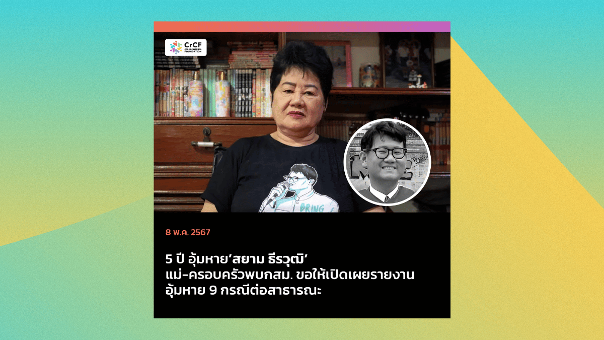 5 ปี อุ้มหายสยาม ธีรวุฒิ แม่-ครอบครัวสยาม พบ กสม.เตรียมเปิดเผยรายงานอุ้มหาย 9 กรณีต่อสาธารณะ 9 พฤษภาคม, 2024