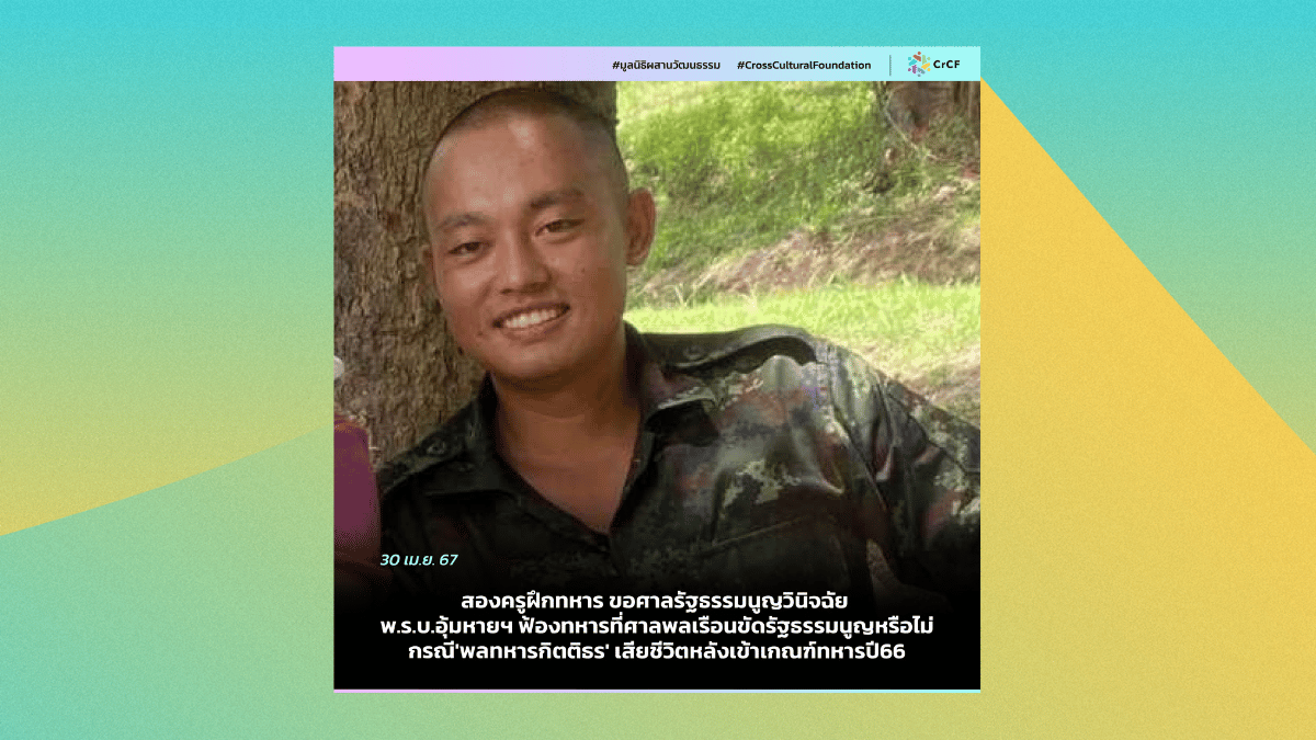 สองครูฝึกทหาร (จำเลย) ขอศาลรัฐธรรมนูญวินิจฉัย พรบ.อุ้มหายฯ ฟ้องทหารที่ศาลพลเรือนขัดรัฐธรรมนูญหรือไม่ กรณีพลทหารกิตติธรเสียชีวิต หลังเข้ารับการทหารเกณฑ์พลัด 1/66 1 พฤษภาคม, 2024