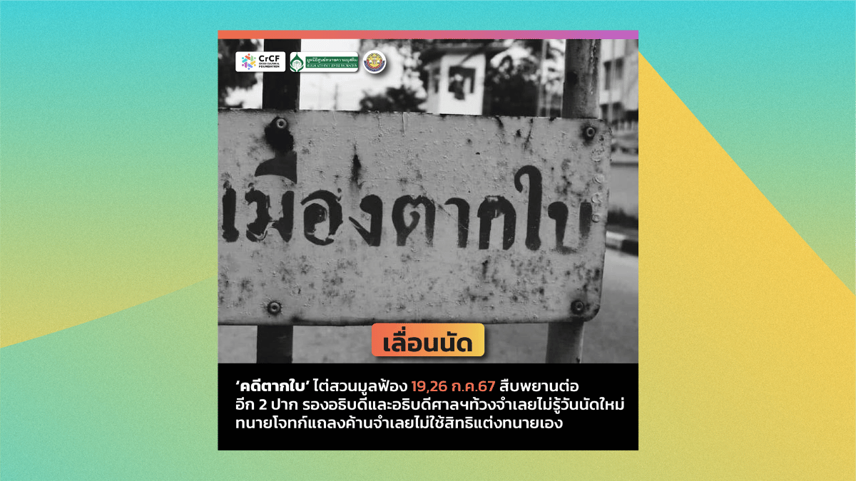 เลื่อนนัดชี้สองสถาน 16 ก.ค. อัยการกรมอุทยานแห่งชาติ(จำเลย) ขอขยายเวลายื่นคำให้การกรณีเจ้าหน้าที่ในสังกัดของจำเลยกระทำละเมิดต่อชีวิตบิลลี่ พอละจี รักจงเจริญ 10 มิถุนายน, 2024