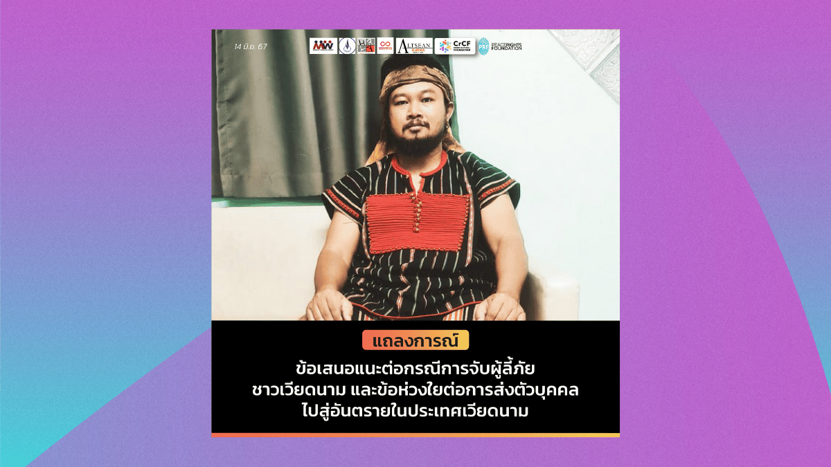 แถลงการณ์ข้อเสนอแนะต่อกรณีการจับผู้ลี้ภัยชาวเวียดนาม และข้อห่วงใยต่อการส่งตัวบุคคลไปสู่อันตรายในประเทศเวียดนาม 14 มิถุนายน, 2024