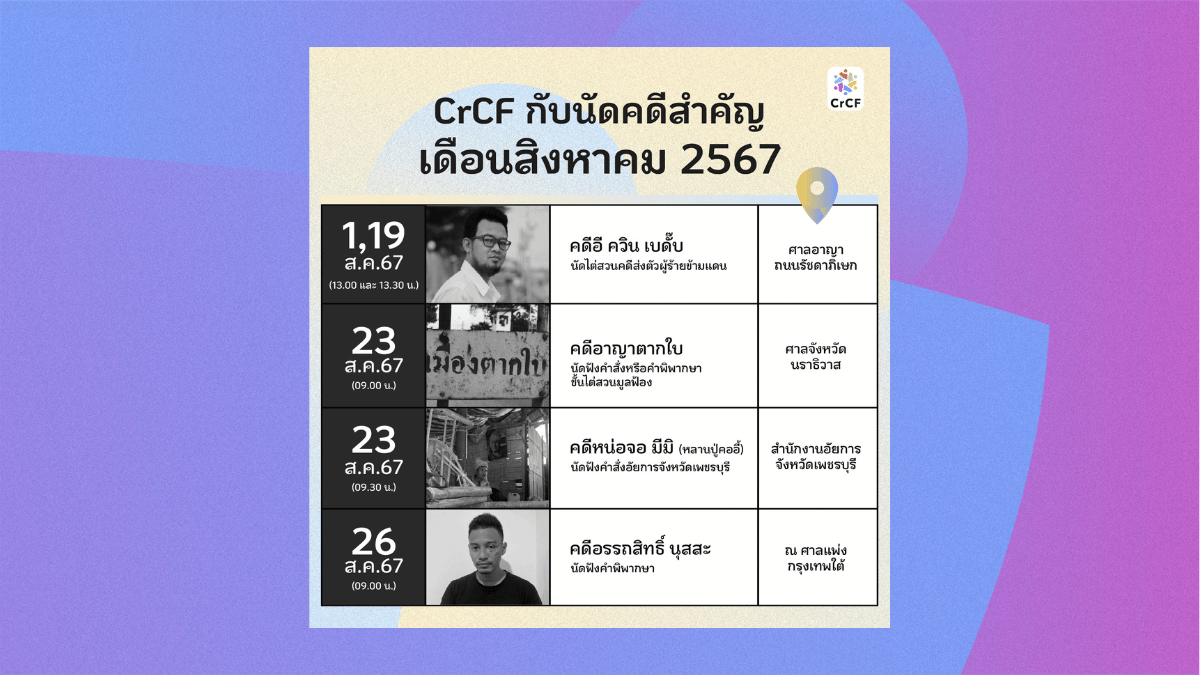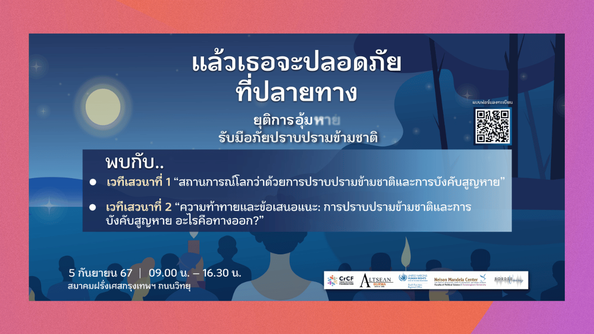 เปิดตัววิทยากรงาน “แล้วเธอจะปลอดภัยที่ปลายทาง: ยุติการอุ้มหาย รับมือภัยปราบปรามข้ามชาติ” 5 กันยายน 2567 26 สิงหาคม, 2024