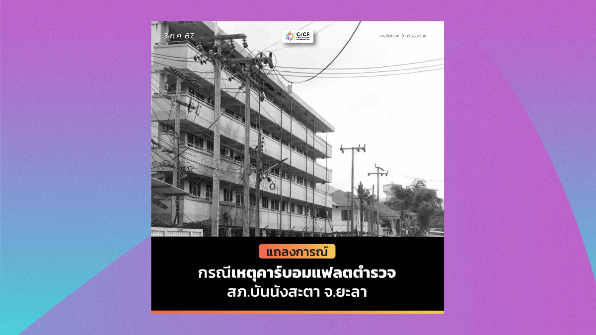 แถลงการณ์ กรณีเหตุคาร์บอมหน้าแฟลตตำรวจ สภ.บันนังสะตา จ.ยะลา รัฐไทยต้องเยียวยาผู้เสียหายทุกมิติ นำตัวผู้กระทำผิดมาดำเนินคดี ทุกฝ่ายต้องเคารพหลักสิทธิมนุษยชน 3 กรกฎาคม, 2024