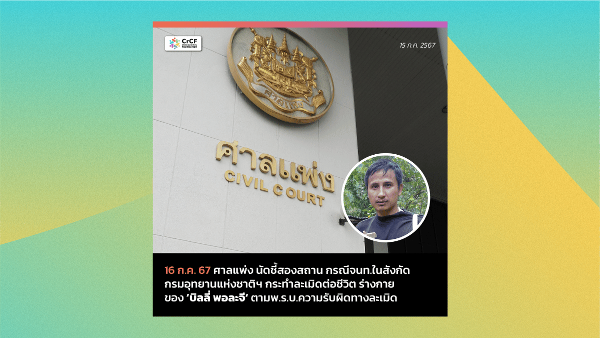 ศาลแพ่ง นัดชี้สองสถาน กรณีเจ้าหน้าที่ในสังกัดกรมอุทยานแห่งชาติฯ กระทำละเมิดต่อชีวิต ร่างกายของบิลลี่ พอละจี รักจงเจริญ ตามพรบ.ความรับผิดทางละเมิด พ.ศ. 2539 15 กรกฎาคม, 2024