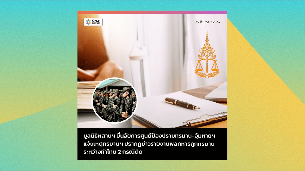 แม่ของปกรณ์ เนียมรัตน์ นักเรียนนายสิบตำรวจ เสียชีวิตระหว่างการฝึก เมื่อปี 2566 เข้าแจ้งความร้องทุกข์ต่อศูนย์ป้องกันการทรมานฯ เพื่อขอให้นำตัวผู้กระทำความผิดมาลงโทษให้ถึงที่สุด 28 สิงหาคม, 2024