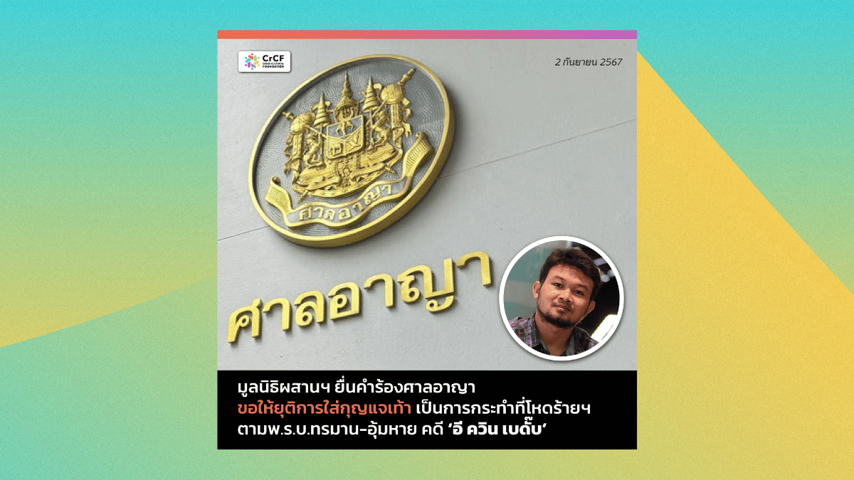 มูลนิธิผสานฯ ยื่นคำร้องศาลอาญา ขอให้ยุติการใส่กุญแจเท้า คดีส่งผู้ร้ายข้ามแดน อี ควิน เบดั๊บ 2 กันยายน, 2024