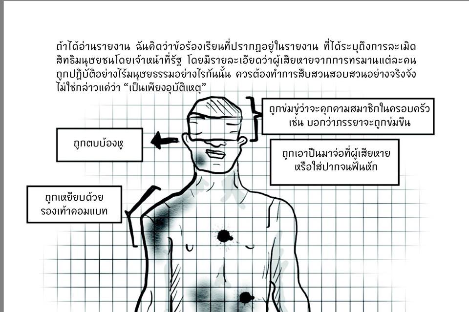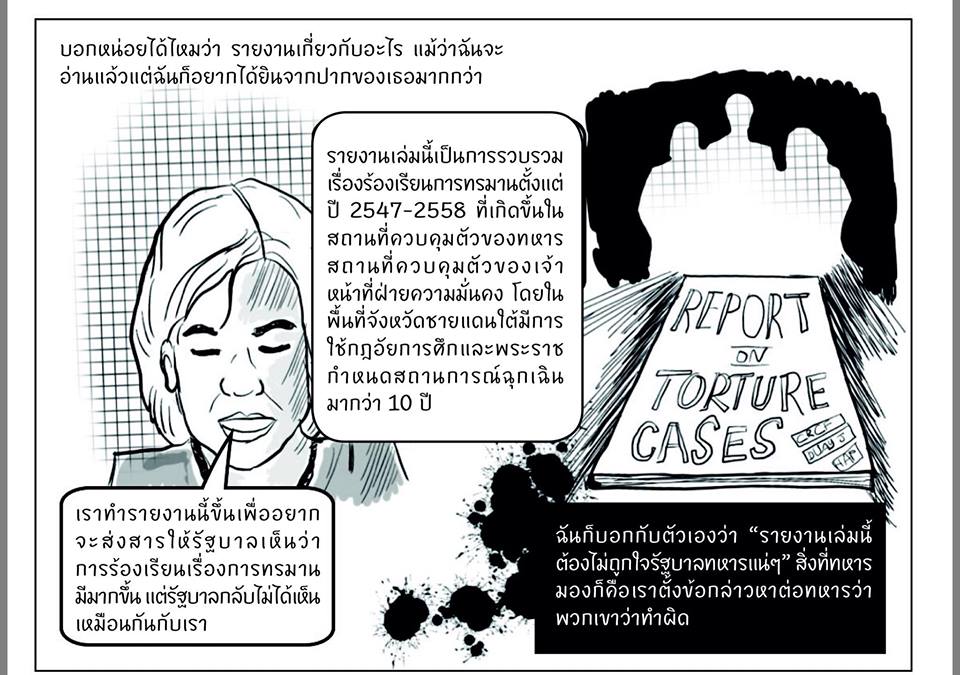 ไม่มีหมวดหมู่2 การตูนเพื่อสิทธิฯ : การรายงานการทรมานในประเทศไทย โดย voicefromthais - 13 สิงหาคม, 2016 145 0 FacebookTwitterPinterestWhatsApp Download at comic torture in Thailand-Thai version final print Author voicefromthais View all posts Related บทความที่เกี่ยวข้องเพิ่มเติมจากผู้เขียน สิ่งที่น่าเป็นห่วงคือ การควบคุมสถานการณ์การชุมนุมของเจ้าหน้าที่รัฐ โดยพรเพ็ญ คงขจรเกียรติ แถลงการณ์ประนามการใช้ความรุนแรงของเจ้าหน้าที่รัฐต่อประชาชนที่ออกมาใช้สิทธิเสรีภาพขั้นพื้นฐาน หยุดคุกคามประชาชน 9 Years of waiting, Military prosecutors file a case against 9 soldiers in Narathiwat who attacked Army conscript Wichian Pueksom, resulting in his death... ตารางเปรียบเทียบ ร่างพระราชบัญญัติป้องกันและปราบปรามการทรมานและการกระทำให้บุคคลสูญหาย พ.ศ. … (ฉบับประชาชน/ฉบับกมธ./ฉบับกระทรวงยุติธรรม) as of 5 Nov. 2020 [:th]Public Discussion on Plans for the Future of Thailand: Security Laws and International Standards 07 Nov.2020 at Thammasat University organized by CrCF, MAC,...