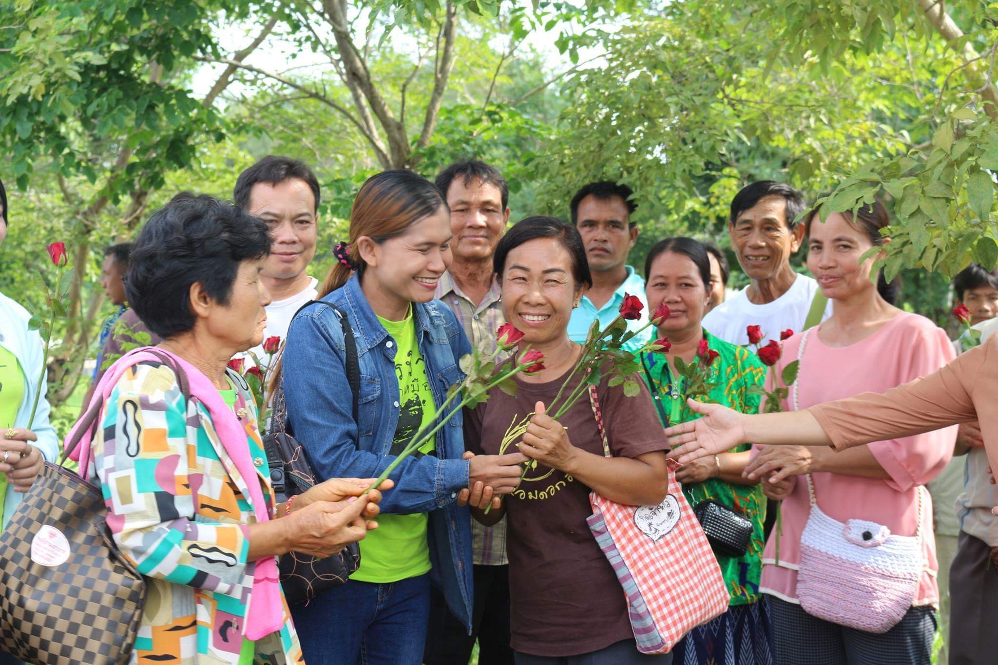Reporters described how the Sakon Nakhon Provincial Court was thronged with members from various networks in Sakon Nakhon who have come group after group to offer roses and Zinnia flowers to show their solidarity to the accused. While waiting for the hearing in front of the courtroom, Mr. Thong Chaipanha, 69 years, defendant no. 16 felt so weak and passed out. It was scorching hot in front of the room and was so crowded with a number of people who were there to attend the court’s hearing. He was taken to Sakon Rak Hospital for treatment and observation, and was allowed to return home later.