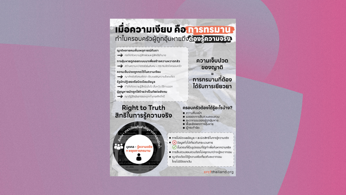ย้อนมองบทเรียนของคณะกรรมการอิสระตรวจสอบและค้นหาความจริงเพื่อการปรองดองแห่งชาติ (คอป.) สู่การผลักดันการค้นหาความจริงการละเมิดสิทธิมนุษยชนอย่างร้ายแรงและกว้างขวางยุคระบอบคสช. 6 สิงหาคม, 2024